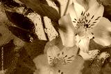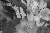 Soft focus cream pink lily Flower bouquet through glass with wet water drops. Abstract nature blur beige pastel background.