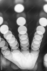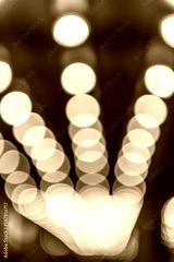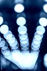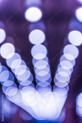 Abstract bokeh background of blue lights in alley passage leading to exit