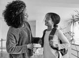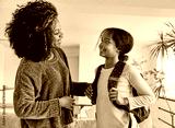 Mother helping daughter to get ready for school, helping her with backpack and books,hugging and leaving home
