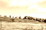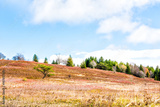 Autumn lush foliage landscape with one single tree with colorful open vast meadow in Dolly Sods, West Virginia