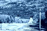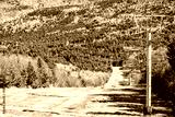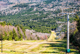 Ski lift with view of mountains empty, nobody in autumn fall season in Snowshoe, West Virginia, WV