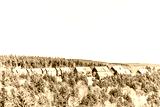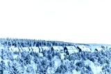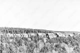 Modern new wooden construction project neighborhood of large Alpine houses in West Virginia, wv, Snowshoe mountains during autumn or winter, pine tree forest on peak
