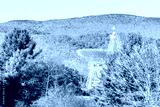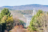 Closeup of Green Bank Radio Telescope in West Virginia with autumn fall forest foliage
