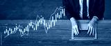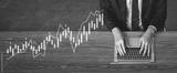 A business professional engages with market data on a laptop, showcasing financial charts for analysis in a modern office environment, reflecting growth and strategy. Gantry