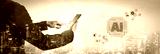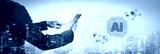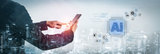 An enterprise AI platform concept. The central processor integrates with business solutions like cloud computing, security, and process automation for corporate growth and innovation. Fermion