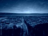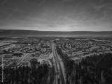 Aerial landscape of the road through snowy forest at winter, Poland.