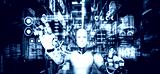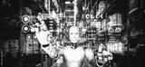 Innovative industry robot working in warehouse for human labor replacement . Concept of artificial intelligence for industrial revolution and automation manufacturing process .