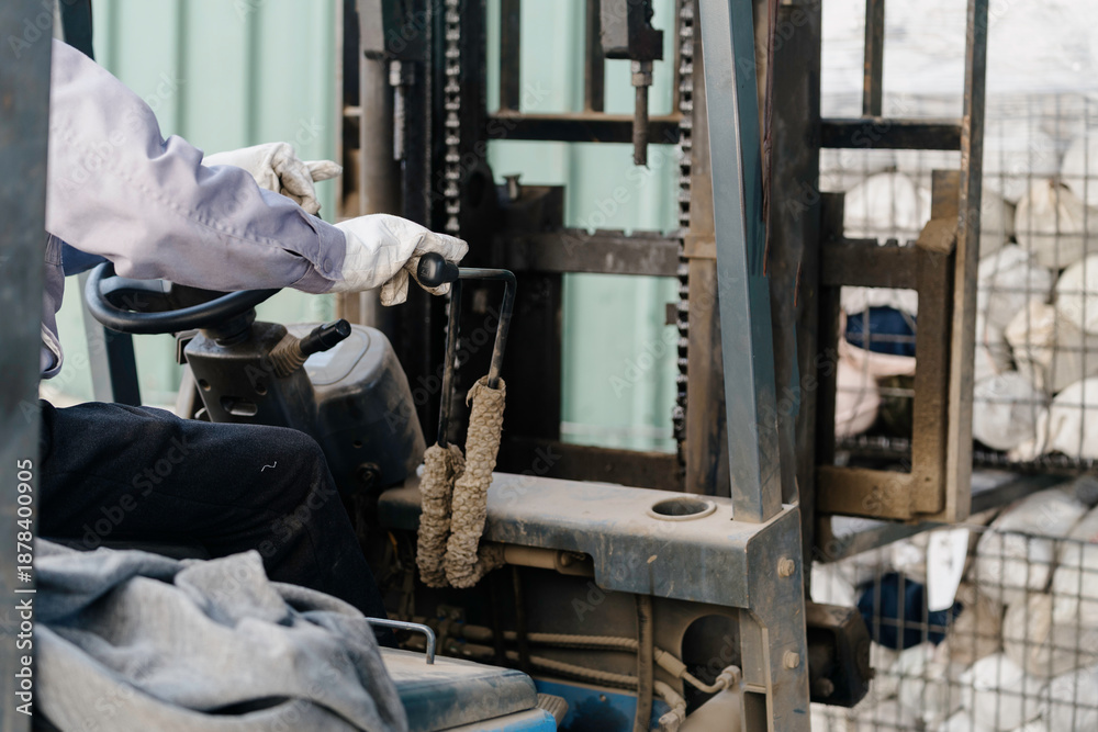 The workers are loading the truck with a forklift.