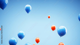 Colorful balloons rising high against a bright blue gradient background, symbolizing celebration