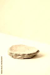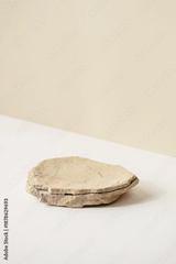 Background for cosmetic products of natural beige color. Stone podium on a white background. Front view.