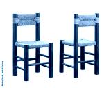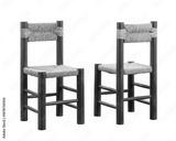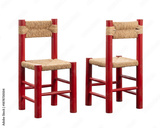 Two red wooden chairs with straw seats. Isolated on a white background.