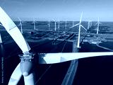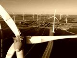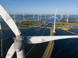 Wind farm generating clean energy near canal locks