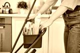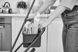 Young woman engaged in spring cleaning her modern apartment with cheerful focus