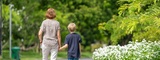 Grandmother and grandson teaching pointing sitting in flower garden loving outdoor bonding generational happy family connection. relationship family outdoor summer joyful warm sunlight