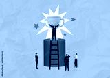 Business leadership concept showing a person at the top holding