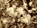 Cornelian cherry tree (Cornus mas) - Close-up of a profusion of rounded clusters of golden yellow flowers on bare brownish twigs