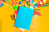 back to school background for kids and student, colorful stationery education in top view flat lay