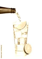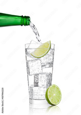 Pouring lemonade soda drink from bottle to glass