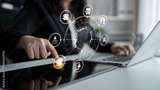 Cyber security icons show cyber attack defense, malware protection, and data security. Cybersecurity prevents hacking, ensures safety, and strengthens cyber attack resilience. Entice