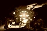 The debate on AI ethics in law and the justice system. A concept of AI and human collaboration in legal analysis and decision making. Motif