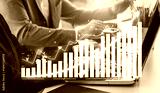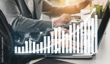 A professional office scene showcasing business analytics with a growth chart on a laptop. The image highlights teamwork and technology in financial analysis. Impute