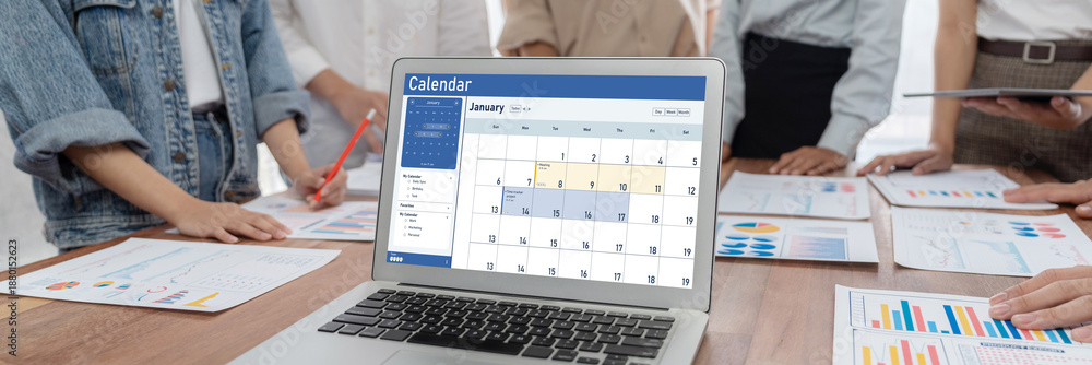 Calendar on computer software application for schedule planning for personal organizer and online business brisk