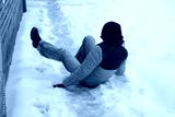 Winter Slip and Risk of Fall Accidents in Winter - a woman slips on an ice-covered road is a common winter hazard, leading to potential injuries