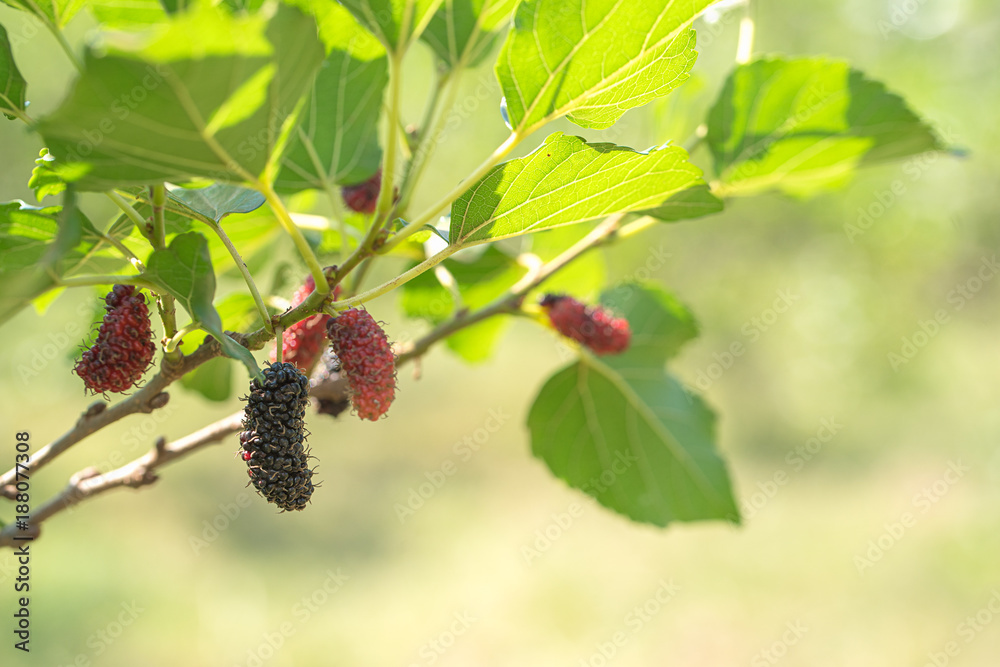 Fresh mulberry fruit on tree in nature