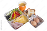 Toasts with vegetables and juice.