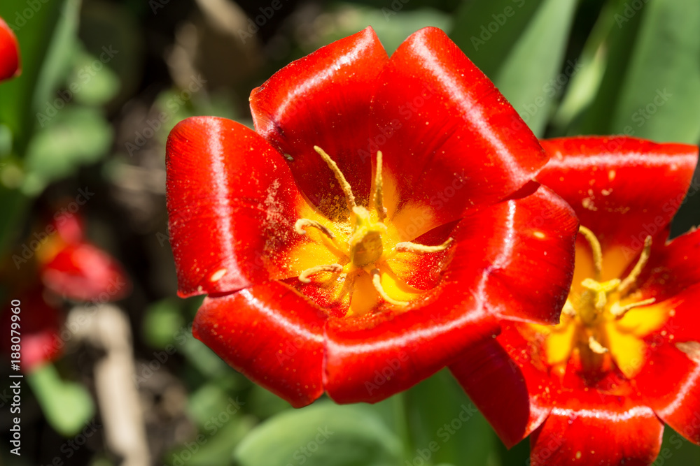 Bright red tulips.