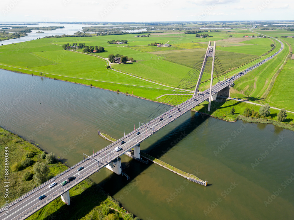 The iconic Eilandbrug, spanning the Ijssel river, near the city of Kampen, The Netherlands