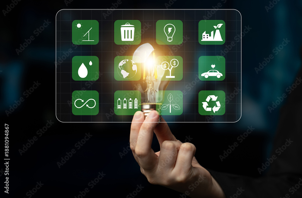 A collection of icons for green energy and sustainability. Symbols for environmental protection, renewable resources, and eco friendly technology. Motif