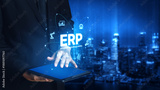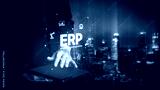 ERP platform visual showing centralized system for enterprise resource planning, improving integration, data flow, business efficiency, finance, inventory, and human resources. Spline