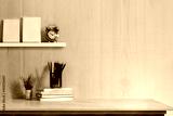 Mock up desk top concept, Workspace with office supplies , books on white marble table.