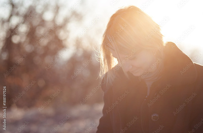 Young fashionable happy blonde woman posing on the field landscape. Concept Love and Emotions. Toned Image.