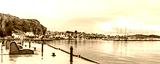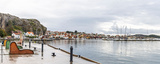 Colorful seaside village of Smogen in Vastra Gotaland, Sweden with red houses and boats