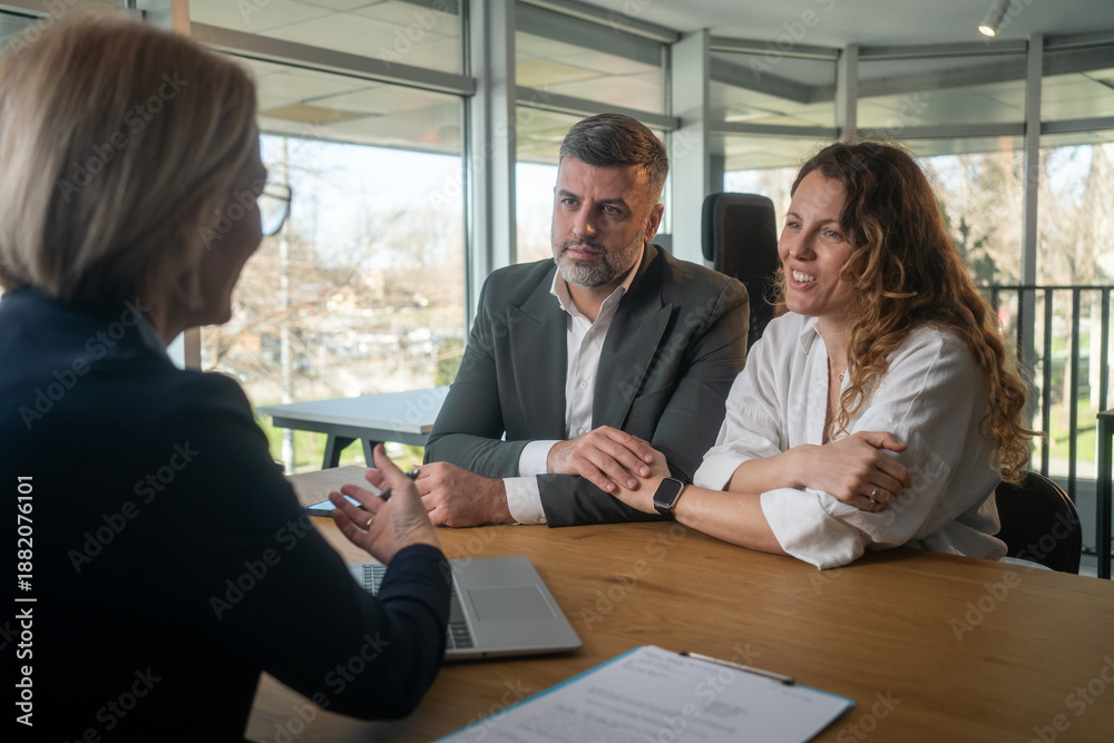 Family couple consultations with a lawyer or insurance agent.