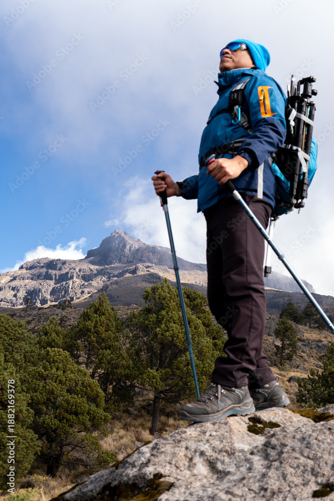 Hiker enjoying mountain view on iztaccihuatl volcano in mexico