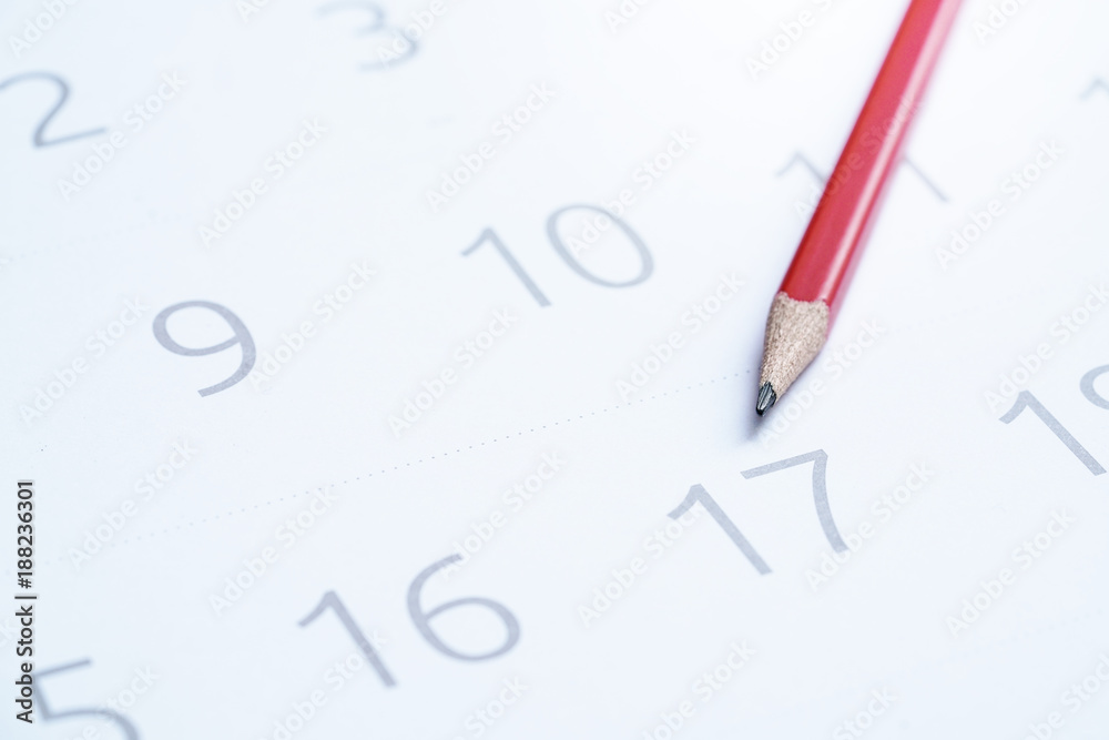 close up of calendar with the red pencil, planning for business meeting or travel planning concept