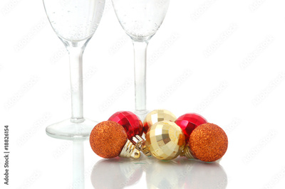 Christmas balls and champagne