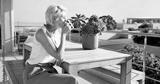 Home, woman and relax with coffee on balcony for calm morning, sun basking and weekend break. Peaceful, mature person and drinking beverage outdoor at house for fresh air, start day or summer holiday