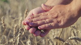 Wheat Harvesting Hand Gestures Demonstrated Amidst the Field of Growing Crops and Nature
