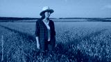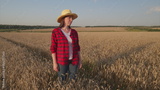 A woman in a field, confidently wearing a straw hat and enjoying the beautiful farm scene