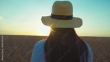 A Serene and Beautiful Sunset View Featuring a Woman Wearing a Stylish Straw Hat