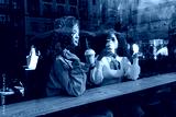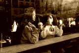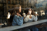 Women friends chatting drinking coffee in cafe