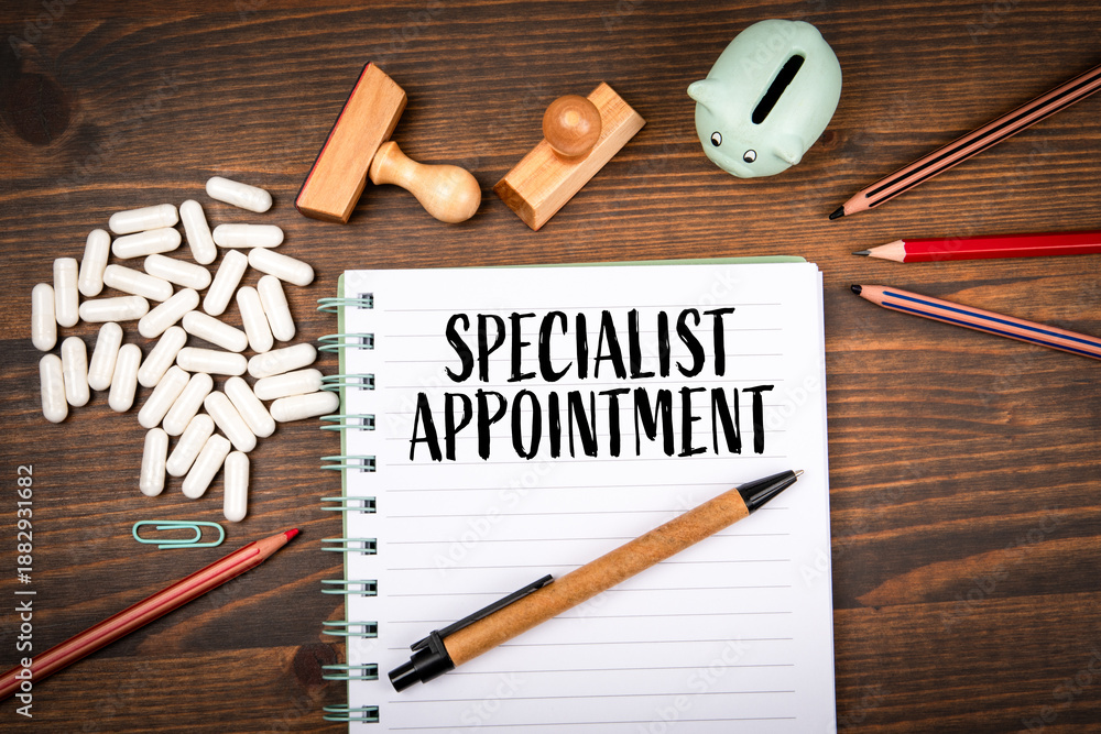 Specialist Appointment Booking Concept With Medical Notebook And Clinic Supplies