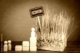 Occupation Territory Control Concept With Wooden Figures And Growing Land Background