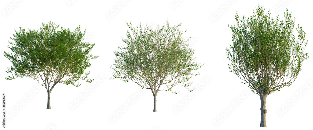 Salix caprea tree, front view, cutout, transparent background, isolate, Elevation, Bare Tree Branches on a White Background - Minimalist Winter Nature Stock Photo
