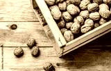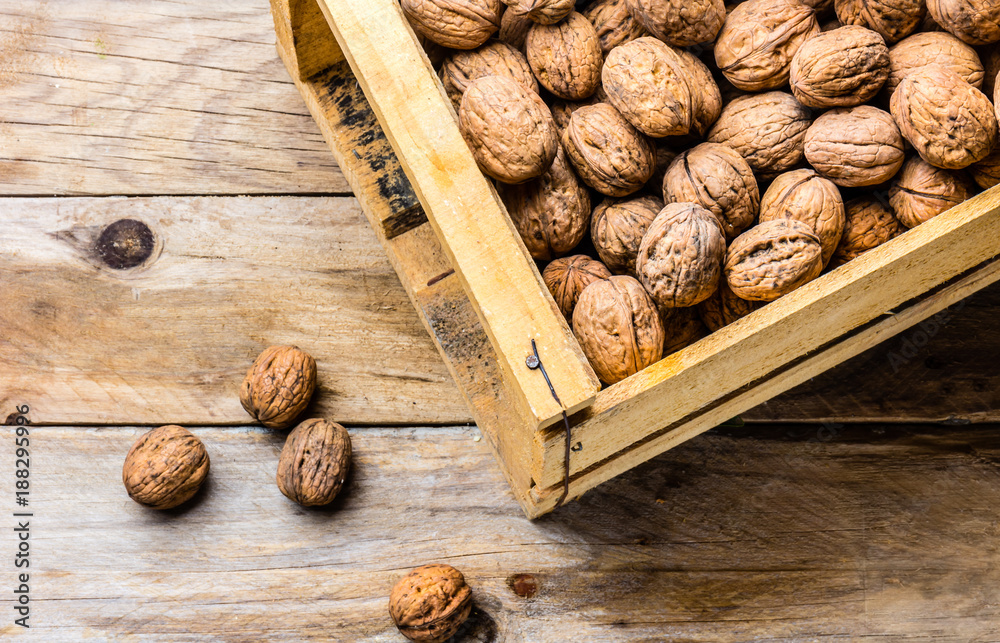 Box of walnuts. Harvest concept