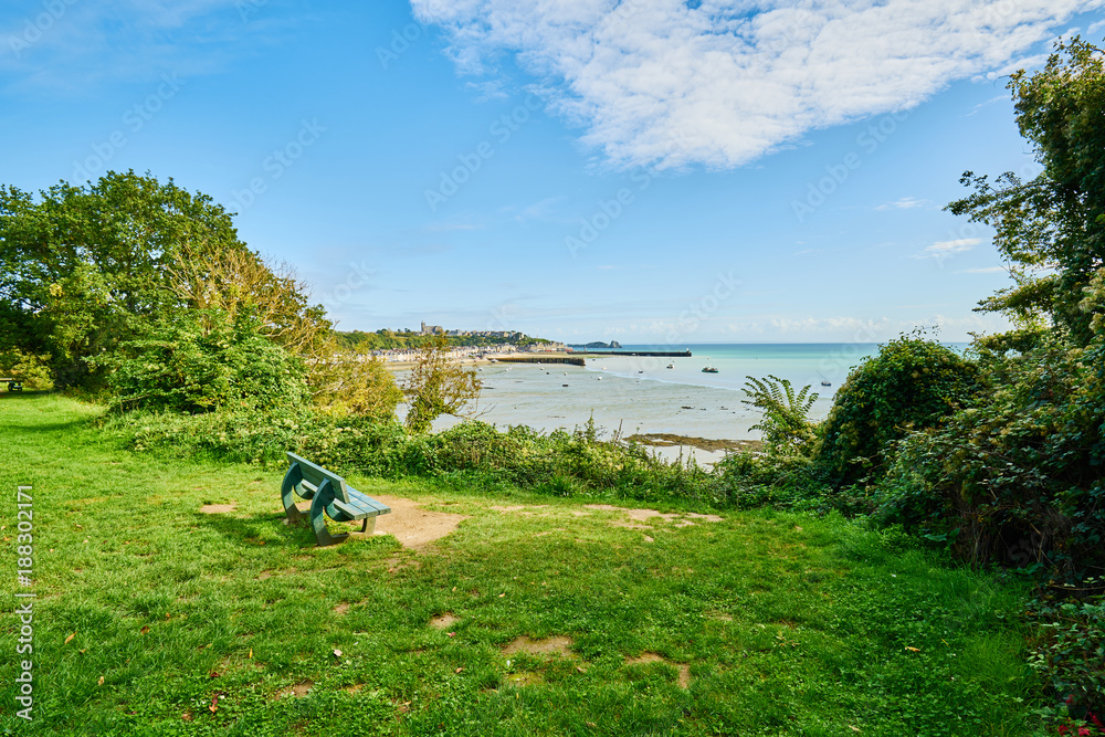 Cancale view of panoramic road, located on the coast of the Atlantic Ocean on the Baie du Mont Saint Michel, in the Brittany region of Western France